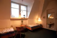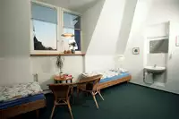 Einfach klasse! Super nette Leute, spitzen Lage, da es ein paar Hundert Meter vom Bahnhof entfernt liegt. Alles Sauber und schön angenehm eingerichtet. Das einzige was wir zu bemängeln hatten war, dass weder Lappen oder Spüli, noch Geschirrhandtücher vorhanden waren. Da direkt nebenan ein Rewe ist, war das halb so schlimm, dennoch eigentlich selbstverständlich. Die Küche war sehr klein, aber das wussten wir vorher auch schon und haben uns trotzdem dazu entschieden uns selbst zu versorgen. Da das Haus auch Verpflegung anbietet, finde ich das auf jeden Fall gerechtfertigt. Dazu ist das angebotene Essen vergleichsweise sehr günstig. Des Weiteren war sonst alles vorhanden, von Spülmaschine über Kaffeemaschine, Wasserkocher, Bettwäsche(gegen Ausleihgebühr von 5€), Handtücher (2,50€) bis hin zu Beamer und Whiteboard. Insgesamt alles wirklich Top! Gerne wieder!