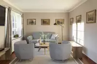 Das charmante reetgedeckte Kutscherhaus verfügt über sechs bezaubernde Wohnungen zwischen 50 m² und 90 m². Zusätzlich gibt es die geräumige Kutscherstube, die Platz für 25 Personen bietet. In ihr finden Sie eine voll ausgestattete Küche, einen Essbereich sowie Unterhaltungsmöglichkeiten wie Darts, Tischfußball und einen gemütlichen Lounge-Bereich zum Entspannen und Zurückziehen.Freuen Sie sich auf Annehmlichkeiten wie eine Außensauna mit einer erfrischenden Außendusche, ein Grillhaus und einen großzügigen Spielplatz mit Trampolin, Sandkasten und Klettergerüst.