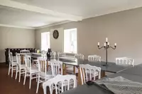 Das idyllisch inmitten der holsteinischen Schweiz gelegene Kutscherhaus schafft mit seinem erweiterten Lounge-Bereich in der Kutscherstube die ideale Atmosphäre für gemeinsames Essen, Kochvergnügen und produktives Arbeiten. Zusätzlich bieten Dart und Tischkicker eine perfekte Abwechslung.Im weitläufigen Garten steht ein Grillplatz zur Verfügung und ausreichend Platz für Abwechslung im Freien: Croquet Spiel oder Wikinger Schach. Das großzügige Reetdachhaus kann bis zu 25 Personen beherbergen. In Einzelzimmern kommen bis zu 13 Personen unter.