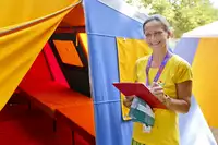 Betreuer: Steilwandzelte für jeweils 2-4 Personen mit Holzfußboden und VOYAGE Betten