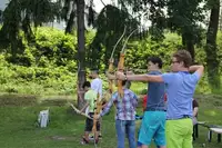 Programmwoche (Unser Team bewegt sich)Programmbausteine: z.B.: Teamtraining, Floßbau, GPS-Tour, Bogenschießen, MTB-Tour, Nachtwanderung