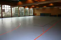 Für sportliche Aktivitäten bieten wir: Einen Sportplatz mit Rasenfläche, ein Multifunktionsfeld und Aschenbahn, eine Großturnhalle (36 m x 24 m, zweiteilbar), die mit Sport und Spielgeräten gut ausgerüstet ist, eine Gymnastikhalle (15 m x 15 m) mit einer Bodenturnfläche, ein Tanzstudio, ein angrenzendes Waldgebiet für Orientierungslauf, Jogging, Wandern usw.