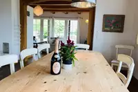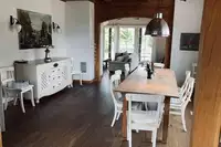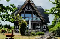 Das Landhaus am Achtwasser ist ein echtes Luxus-Ferienhaus: Das exklusive reetgedeckte Fachwerkhaus nach ökologischer Lehmbauweise mit idyllischem Wasserblick liegt mitten im Naturpark Usedom. Die Inneneinrichtung ist modern, zeigt Liebe fürs Detail und ist zudem auch wirklich komfortabel und praktisch.Das Haus eignet sich ideal für Gruppen und Familien mit Kindern mit bis zu 12 Personen.