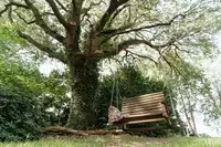 Unter den großen Eichen an der Reithalle und in unserem Garten bieten wir auf 5 Stellplätzen Camping an, mit Sanitäranlagen. Ein für alle Gäste zugänglicher Waschraum mit Waschmaschine und Trockner befindet sich auf unserem Hofgelände.