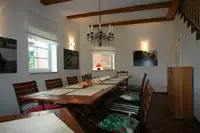 Das Göpelhaus EG mit eigenem Flur ist für kleine Gruppen (15 Personen) buchbar :500,00 € + 110,00 € Endreinigung.