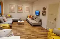 Zusätzlicher Schlaf- & Wohnbereich für Lehrer und Begleitpersonen mit Wohnzimmer, Küche, Bad & Schlafmöglichkeiten | Beamer | Leinwand | Flipchart | TV , DVD | Musikanlage | Internetzugang | Ballspiele | Hot Tub Badefass |Freizeit