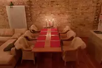 EG 56 m² voll ausgestattete Küche mit Esstischen für bis zu 20 Personen