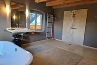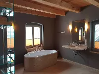 Es gibt insgesamt 20 Schlafplätze, 3 Schlafzimmer mit Doppelbetten, 4 Schlafzimmer mit französischen Betten. Zusätzlich gibt es 2 große Schlafsofas im Yogaraum, 2 Klappsofas in der Terrassenwohnung und 2 Babybetten. Mit der Aufbettung können maximal 20 Personen sehr bequem im Haus nächtigen.
