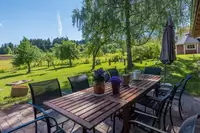 Ein Traumhaus im Schwarzwald! Wir waren 15 Erwachsene und haben Anfang Juni hier eine Woche verbracht. Das Wetter war super. Aber selbst an dem Tag an dem es regnete haben wir das tolle Angebote und Ambiente vom Landhaus Seewald voll genießen können, denn die Außensauna ist der absolute Hammer und auch die schöne Whirlbadewanne und die Regendusche war einfach hervorragend und ein echter Traum. Für die Kinder war der Spielturm besonders toll und die große Wiese auf der die Jungs Fußball gespielt haben. Wir haben dann an der offenen Feuerstelle ein kleines Lagerfeuer gemacht und die Kinder haben das Stockbrot über dem Feuer verputzt. Wir können dieses Landhaus nur absolut empfehlen. Die Größe spricht mit 330 m2 für sich und die Einrichtung ist absolut geschmackvoll.