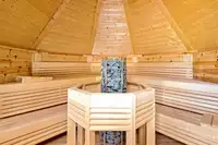 Nach anstrengenden Ausflügen genießen Sie die Außensauna (mit Platz für bis zu acht Personen) und relaxen im Whirlpool. Das Ferienhaus ist komfortabel ausgestattet. Es ist mit einer Größe von 330 m² und vielen Schlafmöglichkeiten nicht nur für Familien, sondern auch Freunde geeignet, die gemeinsam Urlaub machen möchten.