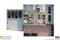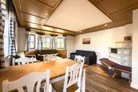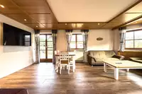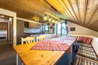 Das Herzstück des Hauses bilden die großzügigen Wohn- und Essbereiche mit bequemer Sofaecke und Sessel. Die sechs Fernseher im Haus sorgen auch bei Schlechtem Wetter für Unterhaltung. Ein moderner Kaminofen schafft an kühlen Tagen ein behagliches Ambiente. Der Essbereich mit Esstisch ist ideal für gemeinsame Mahlzeiten, gesellige Stunden oder Familienfeiern. Die fünf gut ausgestatteten Küchen bietet alles, was Selbstversorger benötigen, unter anderem: Moderne 4-Platten-Herde, Backofen mit Elektroanschluss, Kühlschrank mit integriertem Gefrierfach, Spülmaschine, Mikrowelle, Wasserkocher, Toaster und Kaffeemaschine sowie sämtliches Geschirr, Besteck und Küchenutensilien. Genießen Sie zusammen oder getrennt das Kochen und Essen in den einzelnen Wohnungen oder zusammen als größere Gruppe im großen Wohnbereich.