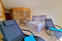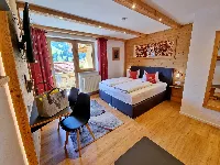 Unser Highlight ist die neugestaltete, 160 m² große Wellness-Suite "Heimatgfühl". Drei separate Doppelzimmer mit Boxspringbett, Dusche/WC und eigenem Balkon bieten Ihnen Privatsphäre. Die Wohnung bietet Platz für bis zu 10 Personen. Der Wohnraum ist ausgestattet mit einer Sofalandschaft, Smart-TV, Bluetooth-Soundbar, großem Esstisch und wird mit seiner offenen, handgefertigten Schreinerküche zum Mittelpunkt Ihres Aufenthalts. Auf dem 30 m² großen Südbalkon sowie dem privaten Wellnessbereich lasst Ihr Seele baumeln und genießt den traumhaften Ausblick in die Berge.