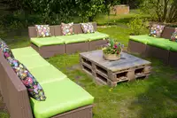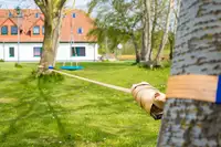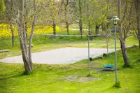 Beachvolleyball; Fußballwiese; Kicker; Tischtennis; Trampolin; Badminton; Slacking und danach zum Ausruhen eine Chill-Lounge-Ecke.Eine Lagerfeuerstelle mit einem Grillplatz.