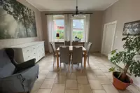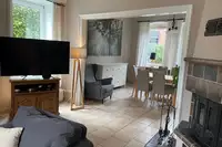 Das Landhaus "Zur Eiche" bietet Platz für bis zu 11 Personen auf über 210 m² Wohnfläche und ist aufgeteilt in fünf Schlafzimmer, Esszimmer, Wohnzimmer mit Kamin, zwei Bäder (im EG barrierefrei), vollausgestatteter Küche mit Einbauherd, Backofen, Kühl-Gefrierkombination, Wasserkocher, Kaffeemaschine, Toaster, Spülmaschine und Mikrowelle. Eine direkt angrenzende Terrasse mit Grill gehört ebenfalls dazu.Freizeit
