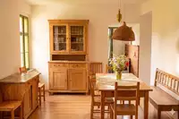 Eigene Küche und ein heller Seminarraum im Dachgeschoss. Perfekt als Ergänzung zum Landheim oder als eigenständige Einheit für kleinere Teams.