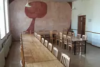 Wir haben mit 50 Menschen ein wunderbares Herbstwochenende im Schulhaus und Seminarhaus verbracht. Herr Heinzelmann war sehr hilfsbereit und freundlich, die sauberen und gepflegten Häuser haben einen feinen Charme und mal wieder mit mehreren in den 7 Bett-Zimmern zu schlafen war eine amüsante Freude. Wir hatten das Essen im Restaurant bei Frau Männel bestellt, es war sehr frisch, reichhaltig und lecker. Ein großes DANKE an unsere Gastgeber, die uns so ein interessantes und intensives Wochenende ermöglicht haben. Und sogar die vergessenen Handys, Hausschuhe und Laptophüllen tauchten wieder auf und wir freuen uns, ganz bald wieder zu kommen zum Abholen und hoffentlich in weiterer Zukunft für gemeinsame Tage und Projekte!