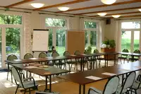 Saal, Seminarraum, Gemeinschaftsräume, 2 Speiseräume, Kaminzimmer, Eventscheune, Fernsehgerät, Flipchart, Pinnwände, Leinwand, Klavier, 3 große Terrassen mit Sitzplätzen, großer ParkplatzFreizeit