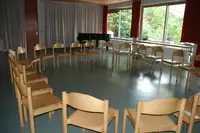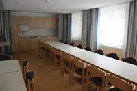 Sporthalle, Hallenbad, Besprechungsraum,Tischtennisplatten, Overheadprojektoren, DVD-Player, Fotokopiergerät, Beamer, Fernsehgerät, Videorecorder, Musikanlage, Klavier, WLANFreizeit
