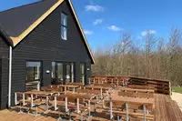 - Hier gibt es große Spielwiesen, ein kleines Waldgebiet, eine große, neu gebaute Holzterrasse mit Sitzgelegenheiten und Blick auf das Wasser.