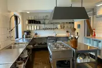 Es gibt eine gut eingerichtete Gewerbeküche mit: