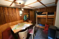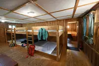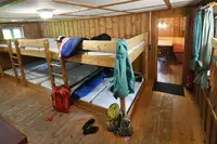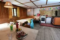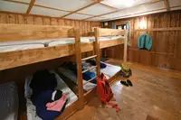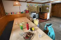 Grill und Lagerfeuerstelle, große Spielfläche und Sitzmöglichkeiten im Freien, Freizeitraum (unbeheizt) für schlechtes Wetter mit Kicker und Tischtennisplatte (Schläger und Bälle mitbringen). Einfach ausgestattete Küche mit Koch- und Essgeschirr, Kühlschrank (ohne Gefrierfach), Kaffeemaschine und Wasserkocher. Schlafräume mit Stockbetten und Matratzen (ohne Decken und Kissen).Freizeit