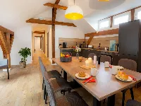 Garten: Der Garten im Lieblingsquartier ist ein idealer Ort für Familien und Gruppen, um sich zu treffen und gemeinsam Zeit im Freien zu verbringen. Besonders hervorzuheben ist das Klettergerüst, das im Garten vorhanden ist. Das Klettergerüst ist mit einer Schaukel und einer Rutsche ausgestattet, was zusätzlichen Spaß und Abenteuer verspricht. Die Kinder können ihre Energie entfalten, während die Erwachsenen den Anblick genießen können.Terrasse: Die Dachterrasse im Lieblingsquartier ist ein beeindruckendes Highlight und bietet eine großzügige Fläche von 150m², um das Panorama und die frische Luft zu genießen. Die Dachterrasse ist mit hochwertigen Gartenmöbeln ausgestattet, darunter bequeme Sitzmöglichkeiten, um Ihren Aufenthalt angenehm zu gestalten. Genießen Sie gesellige Grillabende mit einem integrierten Grill und lassen Sie die warmen Sonnenstrahlen auf Ihrer Haut spüren. Die großzügige Fläche bietet ausreichend Platz für Gruppenaktivitäten, Zusammenkünfte oder einfach nur, um die Ruhe und Gelassenheit zu genießen.