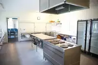 Im Nebengebäude (Schlafgebäude) befinden sich 5 weitere Zimmer mit je 6 Betten sowie 1 großer Duschraum mit 6 Duschen und 4 Toiletten. Gut ausgestattete Mischküche mit einer Kühltruhe, einer Spülmaschine, großen Kühlschränken, etc.