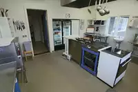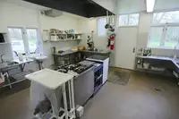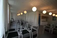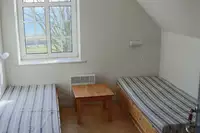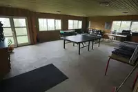 Die Gruppenunterkunft besteht aus dem Hauptgebäude und einem Anbau. Das Hauptgebäude hat zwei Etagen: Im Erdgeschoss befinden sich die Küche, ein Speisesaal und ein weiterer, kleiner gemütlicher Aufenthaltsraum. In der ersten Etage befinden sich 7 gemütliche Zweibettzimmer. Im Anbau gibt es einen großen Aktivitätenraum mit TT-platte, Kicker, … und 8 Zimmer mit 2 bis 6 Betten. Die Duschen, Toiletten und Waschbecken befinden sich im gesamten Gebäude auf beiden Etagen.Profi-/Gewerbeküche mit 1 großer 4-flammiger Gasherd, 1 normaler E-Herd (4 Platten), Gewerbespülmaschine mit Spülstraße, Kaffeemaschine, 2 große Kühlschränke, 1 gr. Gefrierschrank, ausreichend Geschirr und Töpfe, Messer usw. In einem Nebenraum befinden sich eine Waschmaschine und ein Wäschetrockner.