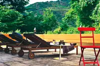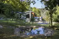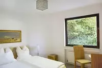 Loreley Unterkunft am Rhein für Selbstversorger. Das Seminar- und Gästehaus "Villa 111" befindet sich in einem 8 Hektar großen Waldgarten mit Bachlauf in Alleinlage und mit Rheinblick. Das Apartment-Haus, gegenüber der Villa mit Rheinblick.