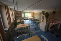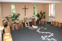 2 Speiseräume davon ist einer teilbar, so dass 3 Gruppen getrennt voneinander versorgt werden können; Werkraum, Mehrzweckkeller, Tischtennisraum, Meditationsraum, Filmraum, Kapelle, Filmprojektor, DVD-Player, E-Piano, Diaprojektor, Ballspiele, Gesellschaftsspiele, 15 AutoparkplätzeFreizeit