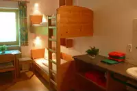 9/20 ein Zimmerbeispiel mit Stockbett im Altbau. Wir haben Mehrbettzimmer mit 3 und 4 Betten.