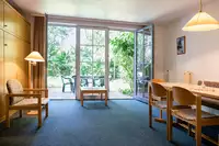 In vier separaten Ferienhäusern befinden sich außerdem insgesamt 20 geräumige Ferienwohnungen mit eigener Terrasse. Außerhalb der Sommerferien können diese auch von Gruppen genutzt werden.