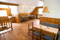 Die beiden Gruppenhäuser bieten in Einzel- bis 6-Bettzimmern Platz für bis zu 48 Personen. Ein Haus verfügt über einen Gruppenraum und eine Teeküche. Zusätzlich steht ein Speiseraum mit Kamin und Klavier zur Verfügung.