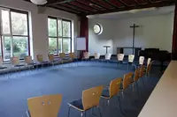 Flipchart, Pinnwand und W-Lan in jedem TR, in der Aula ist eine Bühne, ein Rednerpult und ein Klavier vorhanden, in der Kapelle eine Orgel und ein Flügel. Zum Ausleihen Beamer, Overhaedprojektor, Video und DVD Gerät, Lichtanlage, CD-und Kassettengerät, Mikrofon und kleine Musikanlage.Freizeiträume: Tischtennis, Tischfussball. Zum Ausleihen: Gästekisten mit diversen Bällen, Erlebnispädagogischer Parcours (auch einzelne Stationen), Brettspiele, Bücherbörse.