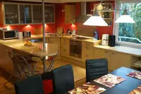 Supergut eingerichtet. Wir hatten das ganze Haus für uns. Hund durfte auch mit. Sehr nette Wirtin, freundliche Zimmer, jedes mit eigenem Duschbad/WC, viele mit Balkon, gut ausgestattete Küchen in jeder Etage. Der Gruppenraum war ideal für gemeinsames Essen, Spielen und Feiern. Überdachte Eingangsterasse. Gerne wieder.