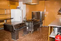 Es gibt eine gut eingerichtete SV-Küche mit: