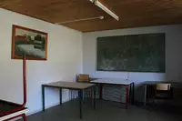 Im Hauptgebäude befinden sich die gut eingerichtete Küche, der Ess-/Aufenthaltsraum, ein weiterer Aufenthaltsraum mit Kamin, zwei Zweibettzimmer und ein Bad. Historisches Schlafgebäude mit 2 kleinen Aufenthaltsräumen, 3 Bädern und 8 Zimmer mit 46 Betten, verteilt auf 2 Etagen.Im neuen Schlafgebäude befinden sich ein großer Eingangsbereich, der als Aufenthaltsraum genutzt werden kann, ein Zweibettzimmer mit eigenem Bad, 12 Vierbettzimmer, 4 Sanitärräume mit 8 Toiletten, 8 WCs und 12 Waschbecken. Das Gebäude ist symmetrisch auggebaut; die Zimmer sind von 4 Fluren aus zu erreichen.