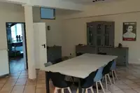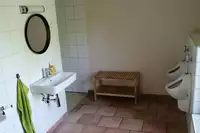Das Haus liegt etwas abseits, in ruhiger Lage. Beim Reinkommen ist man sofort im riesigen Frühstücksraum mit hohen Decken. Die Küche, ein Schlafraum, zwei Toiletten und 1 Dusche findet sich hier. Die Küche ist praktisch und sehr gut ausgestattet. Im großen Raum findet sich ausreichend Besteck/Geschirr/Müslischüsseln. Die Möbel sind bequem. An einem Ende stehen Sitzmöglichkeiten für viele Personen. Der Zugang zum kleinen Garten war klasse. Es gab Bierbänke und Biertische für alle Personen. Im Obergeschoss gab es ein Gruppenraum, leider keine Toilette. Der Kicker und die Dartscheibe waren super, auch hier ausreichend Platz für unsere Gruppe mit Sitzmöbeln und Tischen. Im 2. Obergeschoss gab es vier Gruppenräume mit div.Betten und zwei Waschräume mit WCs. Das 2.OG ist sehr abgeschieden, keine Geräusche von unten klangen nach oben. Im EG hört man die Aktion vom 1. OG, wie es so ist in alten Häusern. Wir benötigten den Vermieter und der war sofort und überaus freundlich präsent und hat sich sofort gekümmert. Das Haus war nicht optimal gereinigt und sofort fanden wir eine Lösung mit ihm - das war einfach toll. So konnten wir unseren Aufenthalt genießen. Der anfallende Reparaturstau wird diese Woche beseitigt - das Haus war durchgehend belegt und es ergab sich nicht. Wir können das Haus empfehlen, wir haben uns sehr wohlgefühlt und die Umgebung genossen. Der Garten wurde zum Essen genutzt, die Feuerschale und der Grill sorgten für Gemütlichkeit und Essen. Danke für die schöne Zeit und Ihre Freundlichkeit. Wir empfehlen das Haus sehr gerne.