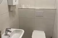 Im gleichen Gebäude, also bei den Zimmern, befinden sich zwei Gemeinschaftsbäder. Diese haben je 2 Duschen, 2 Waschtische und 2 Toiletten. (Bei den Männern sind noch 2 PP vorhanden). Im nächsten Jahr ist der Bau eines weiteren Sanitärtraktes geplant.