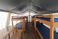 Es stehen insgesamt 42 Betten (36 in den Zelten, 6 in den Bauwagen) zur Verfügung,