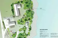 Das Grundstück reicht direkt bis an den Fjord – hier kann man am eigenen Strandabschnitt bei schönem Wetter baden.