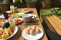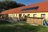 Wir sind mit einer Gruppe aus 24 Personen gefahren, davon waren 10 Kinder. Uns hat der Aufenthalt gut gefallen. Die Vermieterin war sehr freundlich und wir haben uns gut umsorgt gefühlt. Die Lage ist sehr ruhig, wodurch die Kinder sorgenlos auf dem Gelände spielen konnten. Besonders die vielen Tiere haben sie begeistert. Es war genügend Platz, auch in der Küche und jede Familie hatte ihren eigenen Raum. Die Räume waren leider etwas dunkel und feucht, da man sich jedoch die meiste Zeit draußen aufgehalten hat, war das okay. Auch die Duschräume wirkten bereits etwas abgenutzt. Trotzdem hat uns die Unterkunft sehr gefallen, da sie auch in Meeresnähe liegt und wir würden gern wieder kommen.