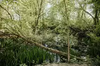 Auf dem Naturerlebnishof Vulkaneifel befinden zahlreiche Bäume, in denen auch in Baumzelten übernachtet werden kann.