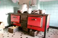 Küchenausstattung: In der geräumigen Küche steht unser guter alter Küchenherd. Er wird mit Holz beheizt. Alle wichtigen Kochgeräte und Geschirr sind vorhanden. Wer Wert auf scharfe Kochmesser legt - sollte sie mitbringen. Vorhanden sind 3 Kühlschranke, ein Elektroherd, Kochplatten und eine Speisekammer.