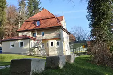 Geöffnet: 15. März-30. November. Einkaufstipp: Im Dorf bietet der Biolandhof Ertel (Tel. 09154 5948) Produkte nach den Richtlinien des Bioland-Verbandes an. Auf Vorbestellung (ca. drei Wochen vor der Anreise) können Produkte wie Lammmfleisch, Schafschinken, Rotweinsalami, Bierbeißer, Knoblauchring, Dinkel, Filzwolle usw. bezogen werden. Das Naturfreundehaus liegt im Naturpark Fränkische Schweiz-Veldensteiner Forst < www.fsvf.de > im Bundesland Bayern.Lage