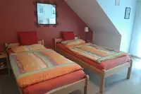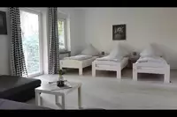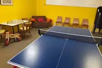 Aufenthaltsraum mit Kaffeemaschinen, Kühlschrank, Haushaltsherd, Backofen, Mikrowelle, Geschirrspüler, Fernseher; Tischtennisraum, Klavier, Internetzugang, W-LAN, Tischtennis- und Kickerraum. Zusätzlich gibt es eine weitere Wohnung mit 4 Betten.Freizeit