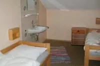 Zur Verfügung stehen 5 Zweibettzimmer und 3 Vierbettzimmer mit fließend Warm- und Kaltwasser, sowie 3 Fünfbettzimmer ohne fließend Wasser. Waschraum, Duschen und Toiletten befinden sich auf den Etagen. Bus- und Autoparkplätze am HausKein Selbstversorgerhaus!
