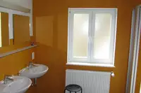 Im 1. OG Zimmer mit 4 x 2 und 2 x 4 Betten, ein Waschraum mit 2 Duschen und Waschbecken, ein WC.