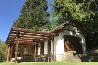 Das Haus hat einen einfachen Standard. Das muss man wissen und darf auch nicht Hotel-niveau erwarten. Die Zwischenetage zum Schlafen, die eigentlich nur für Kinder unter 150 cm geeignet ist, ist urig. Die Küche ist gut nutzbar und enthält genügend Koch- und Abwaschgelegenheiten. Schön ist, dass die Toiletten und Duschen frisch gemacht sind. Es gibt viel Platz draußen mit Sitzgelegenheiten, eine Grillstelle, Parkplätze. Und es ist eine unglaubliche Ruhe dort. Der Wald ist ein Schatz voller Pilze und wunderschöner Augenblicke. Aber ganz wichtig auch: Die unauffällige aber aufmerksame Begleitung durch die Hausdame, immer für Fragen offen, hilfsbereit und tolerant. Danke dafür! Wir haben uns als große Familiengruppe wohlgefühlt.