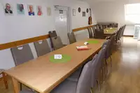 Insgesamt sehr zufrieden. Zimmer sehr sauber. Aufenthaltsraum ist gut geeignet für gesellige Abende mit Gruppen. Essen sehr gut. Die Küche schließt allerdings schon um 18 Uhr und die Gaststätte um 19 Uhr. Hier wäre mehr Flexibilität wünschenswert.